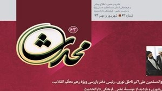 شصت و سومین شماره ماهنامه اطلاعرسانی و فرهنگی آستان حضرت عبدالعظیم حسنی(ع) و مؤسسۀ علمی ـ فرهنگی دارالحدیث با عنوان «محدث» منتشر شد.