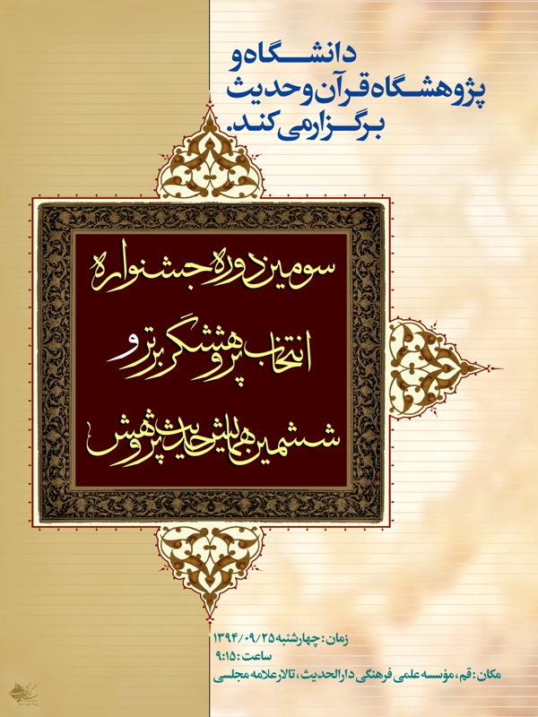 همزمان با هفته پژوهش برگزاری ششمین همایش حدیث پژوهش و سومین جشنواره انتخاب پژوهشگر برتر