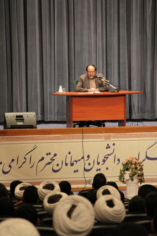 وی عنوان کرد: اگر ما قرآن و احادیث را این گونه تعریف کنیم که به لحاظ معرفتی قابل اثبات است، اما به لحاظ عملی منشأ نظام‌سازی نیست و به طور کلی آن را تجربه عرفانی در نظر بگیریم، کسی با این تئوری مخالفت نمی‌کند، اما گر بگوییم که ایمان به خدا مستلزم نفی برخی از مناسبات اجتماعی و اقتصادی غلط و نفی برخی حکومت‌ها و روابط است و قرآن و حدیث را به عرصه عمل بیاوریم، مخالفان زیادی پیدا می‌کند.