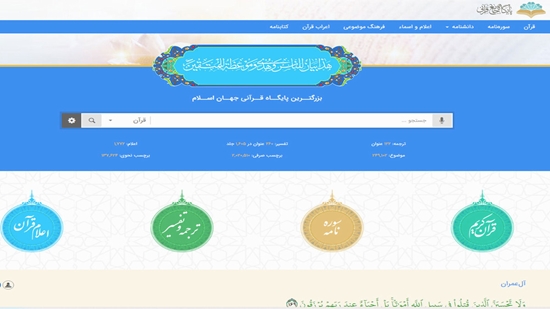 دیتاها، پژوهش‌ها و اطلاعات قرآنی مرکز از جامعیت چشمگیری برخوردار است. به عنوان نمونه در زمینه ترجمه، تفسیر و چندرسانه‌ای، با آمار بالایی پایگاه را فعال کردیم. همچنین، متن قرآن در این پایگاه، از قابلیت‌های خوب و فهرست‌های کارآمدی برخوردار است و در خصوص پژوهش‌های قرآنی، مثل: احادیث تفسیری، فرهنگ موضوعی، اعراب قرآن و اَعلام قرآن نیز جامیعت قابل توجهی دارد.