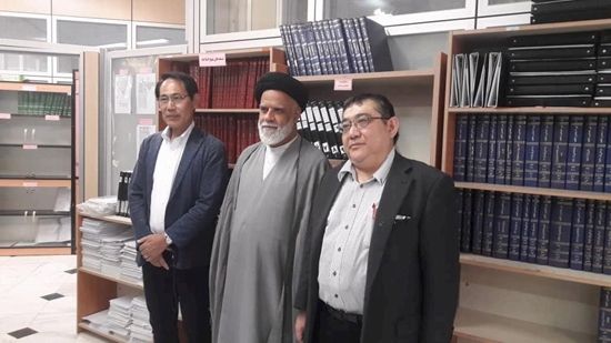 مهمانان همچنین از مخزن کتابخانه تخصصی دارالحدیث و آثار ترجمه شده در مدیریت امور بین الملل مؤسسه بازدید کردند و کتاب حکمت نامه عیسی بن مریم و حکمت نامه کودک به ایشان اهدا شد.