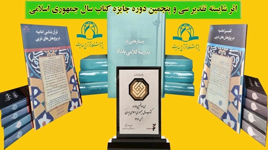 همچنین در بخش «کلام» از بین ۶ آثار راه یافته به مرحله نهایی داوری، کتاب «جستارهایی در مدرسه کلامی بغداد» از آثار پژوهشگاه قرآن و حدیث، تالیف جمعی از نویسندگان در ۶۵۷ صفحه به عنوان اثر شایسته تقدیر سی و پنجمین دوره جایزه کتاب سال جمهوری اسلامی شناخته شد.