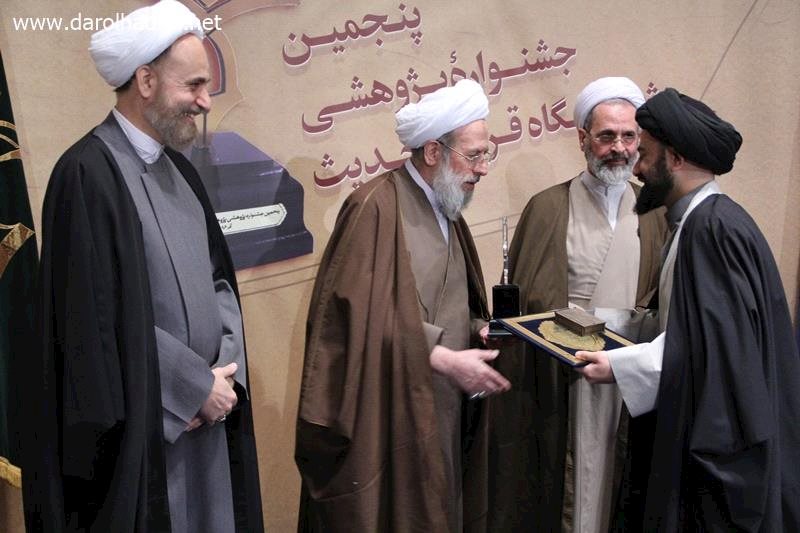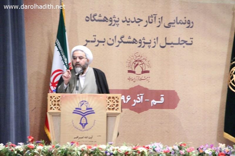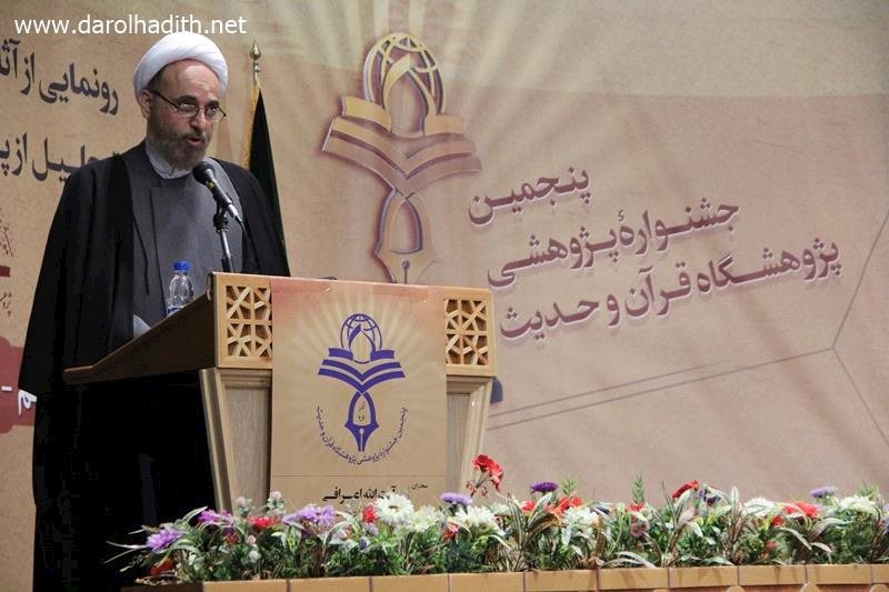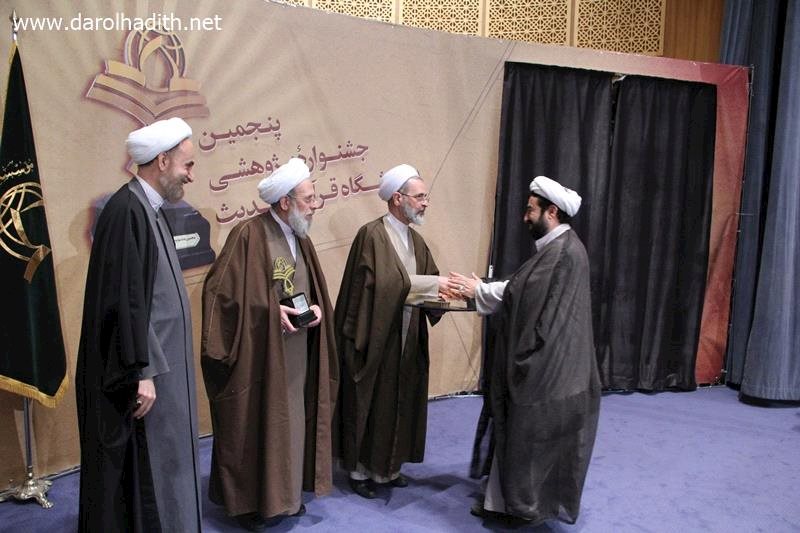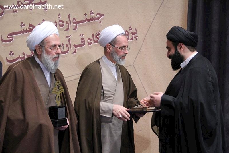 به گزارش پایگاه اطلاع رسانی دارالحدیث، پنجمین جشنواره پژوهشی پژوهشگاه قران و حدیث پیش از ظهر چهارشنبه 22 آذرماه در سالن علامه مجلسی مؤسسه علمی و فرهنگی دارالحدیث با حضور آیت‌الله محمدی ری‌شهری رئیس این مؤسسه برگزار و در حاشیه این مراسم از برترین‌های پژوهشگاه قرآن و حدیث تجلیل شد.